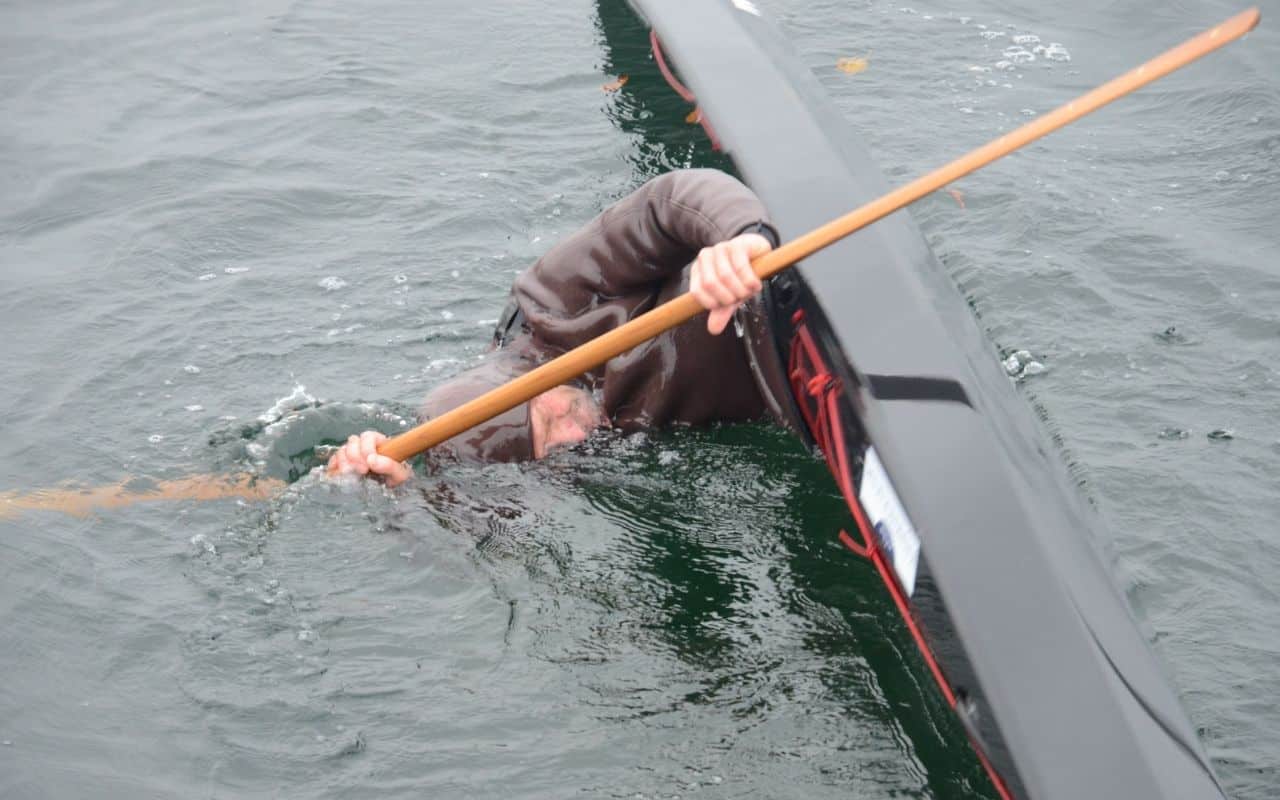 The Inuit learned many different ways to roll the kayak around, for example, they could also get back on an even keel if, after harpooning a marine mammal, they were dragged away and wrapped in harpoon lines.